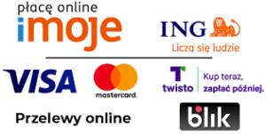 *Klient może wybrać następujące formy płatności za zamówione Towary: Płatności BLIK, karta płatnicza, przelew elektroniczny poprzez zewnętrzny system płatności imoje, obsługiwany przez firmę ING Bank Śląski S.A. z siedzibą w Katowicach